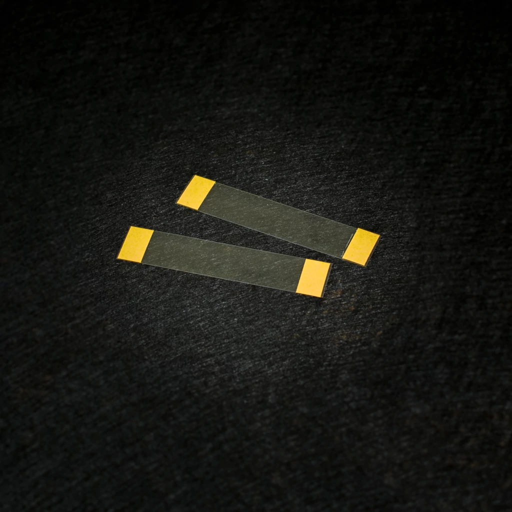 Száraz akrilragasztóval bevont poliészter szalagok, amelyeket fényképek és grafikák táblákra történő rögzítésére használnak ideiglenes védelem, kiállítás vagy szállítás céljából.
